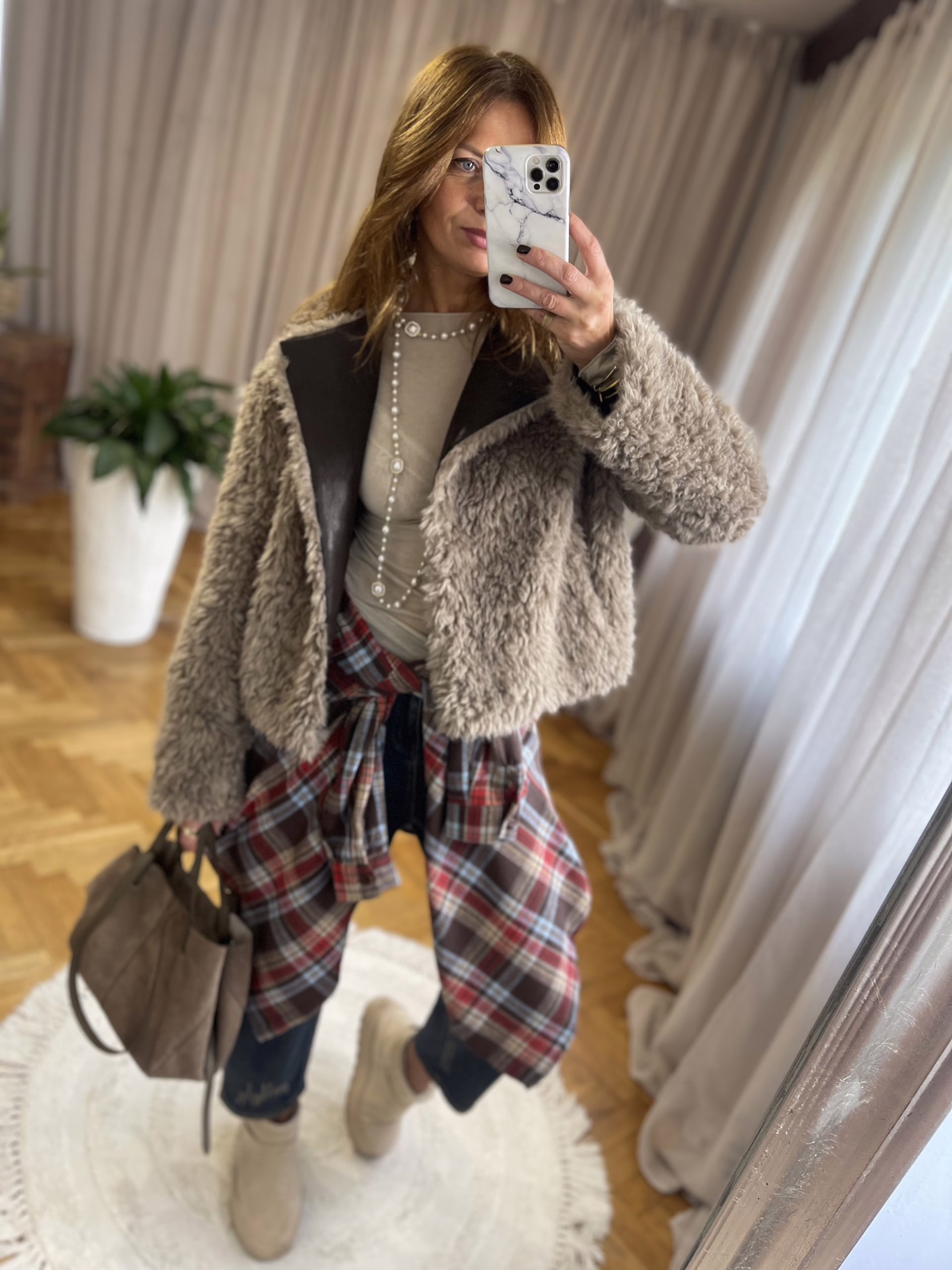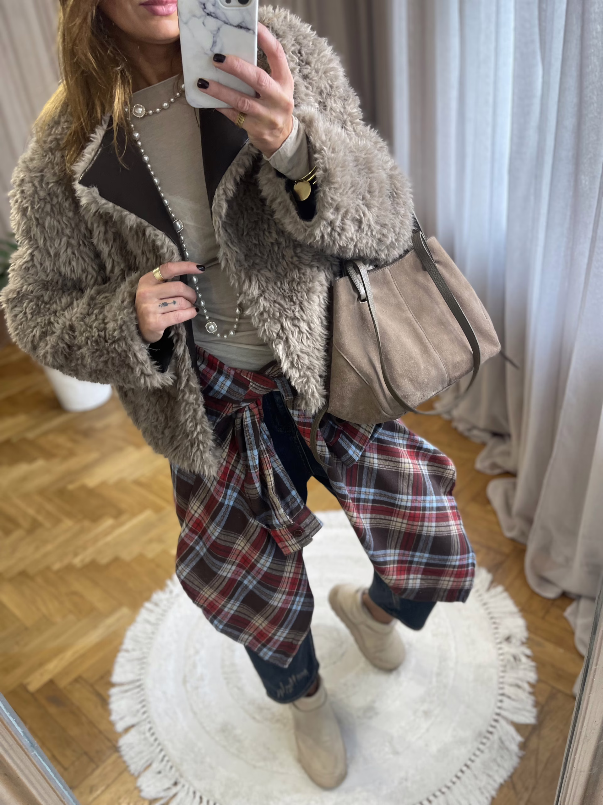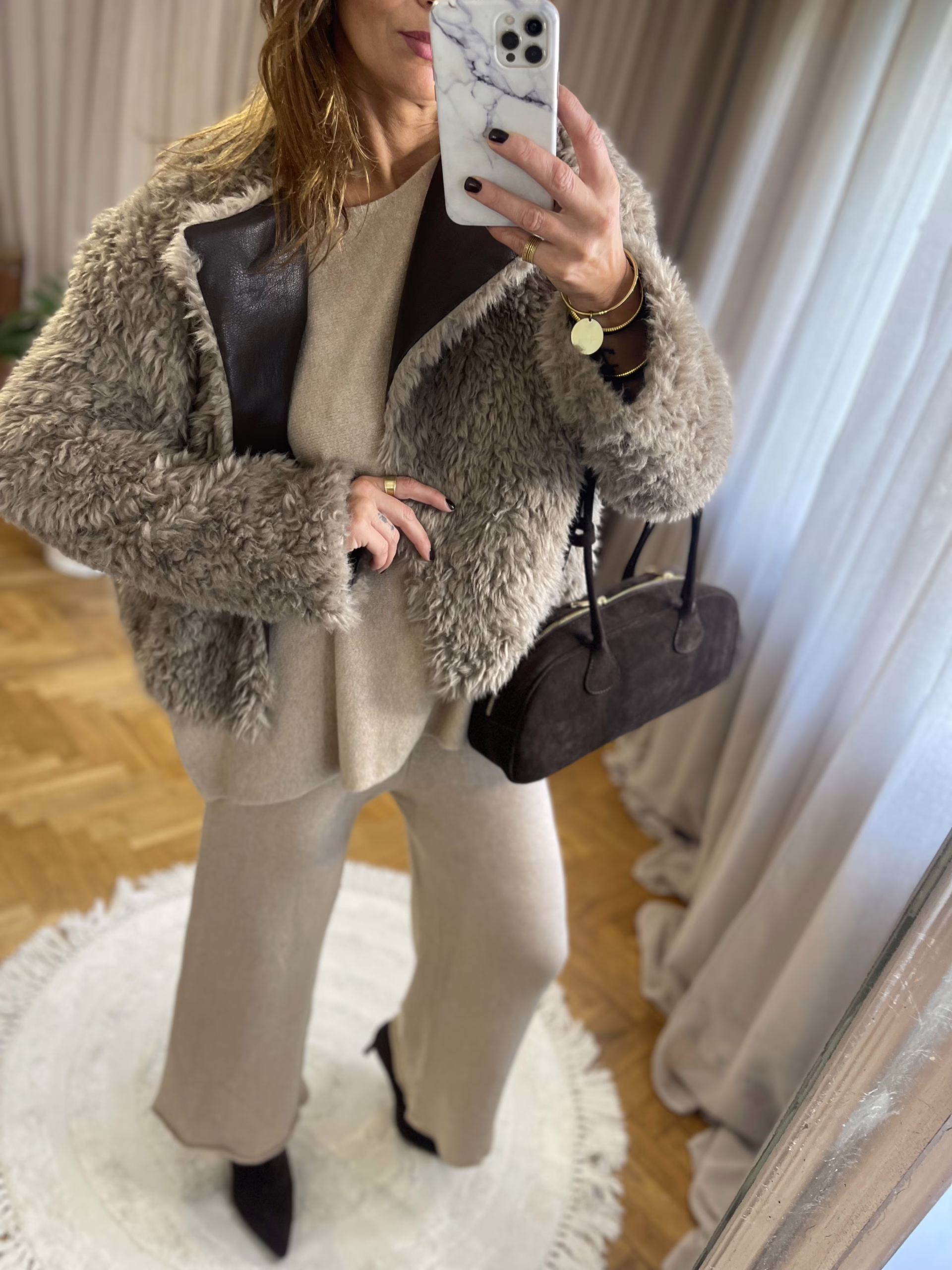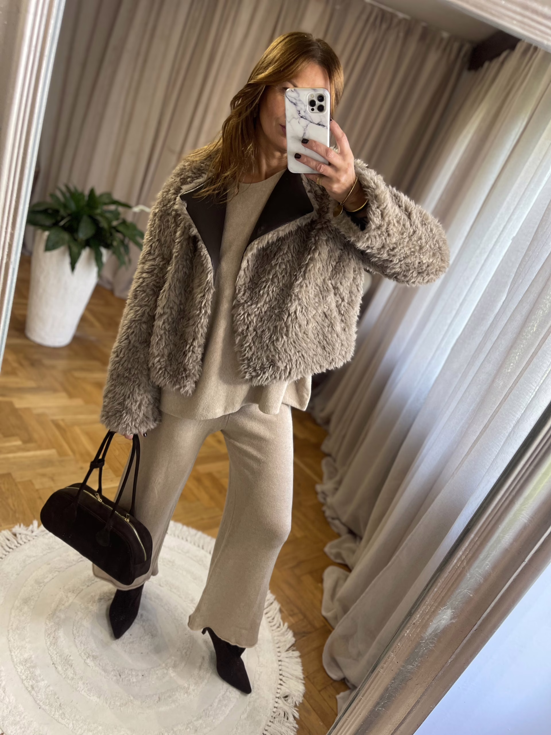 Kożuszek Teddy taupe to ciepły i stylowy wybór na chłodniejsze dni. Miękkie, puszyste futerko w odcieniu taupe otula sylwetkę, a krótki fason z szerokim kołnierzem dodaje całości miejskiego charakteru. Model pięknie prezentuje się zarówno w casualowych stylizacjach z jeansami, jak i w bardziej kobiecym wydaniu z botkami czy sukienką. To idealna kurtka dla kobiet, które cenią komfort i modny wygląd przez cały sezon.